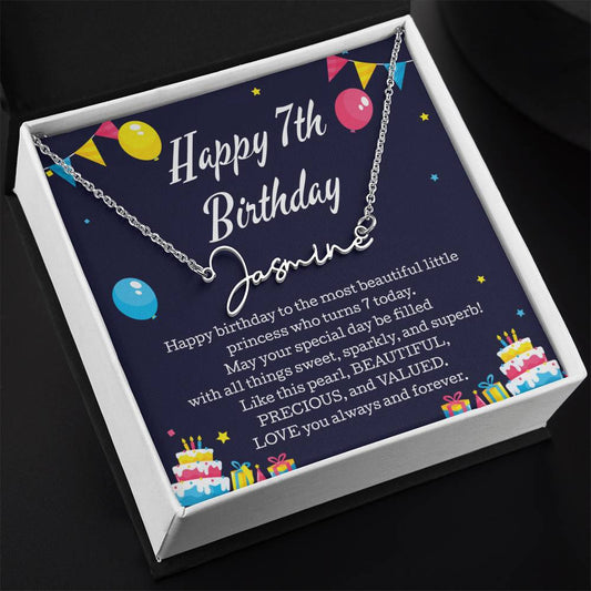 Signature Style Name Necklace Happy 7th Birthday