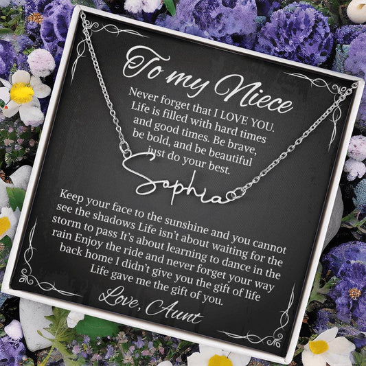 Signature Style Name Necklace With Message Card For Niece, Custom Name Pendant With Heartfelt Love Letter, Sentimental Necklace, LED Box