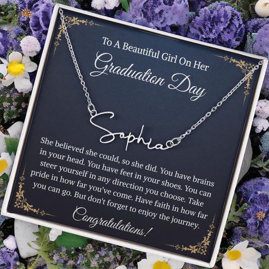 Signature Style Name Necklace, Inspirational Graduation Gift, High School Graduate Gifts for Best Friend or Daughter