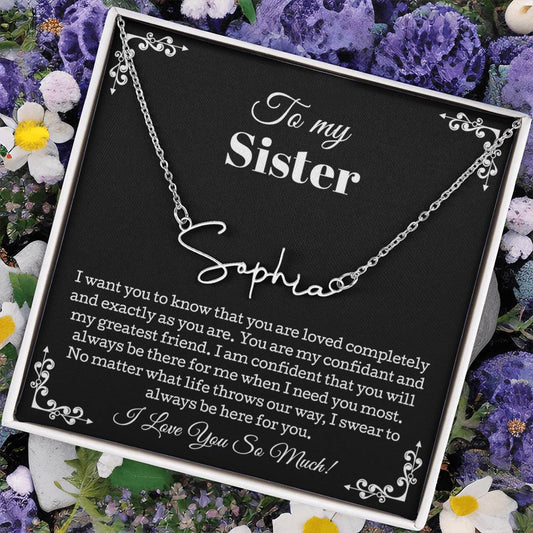 Signature Style Name Necklace, Sister Gifts from Sister, To My Sister Necklace From Sister, Jewelry Gifts For Sister with Message Card