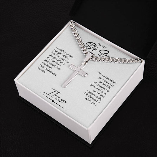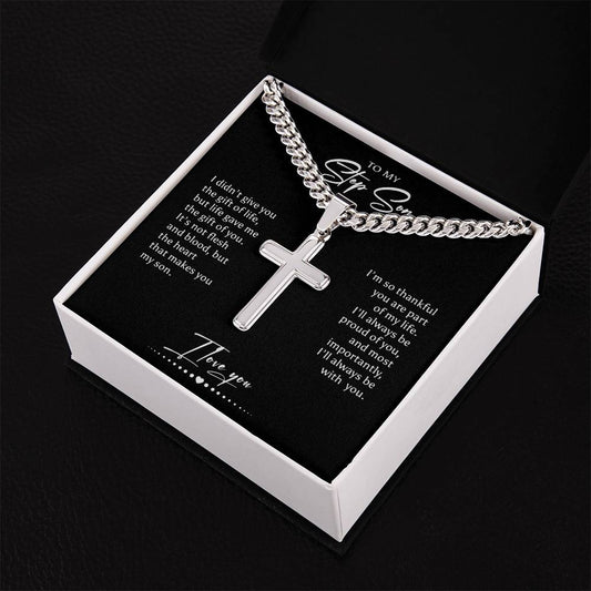 Step Son Gift Cross Necklace Cuban Chain, Christmas, Birthday, Graduation Gift for Step Son, Bonus Son Gift, Stepson Gift, Step Son Jewelry, Best Step Son
