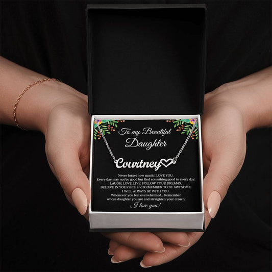 To My Beautiful Daughter Heart Name Necklace, Graduation Birthday Christmas Jewelry Gifts from Mom Dad With Heartfelt Message Card