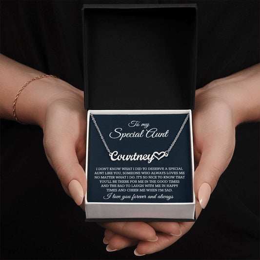 To My Beautiful Aunt Heart Name Necklace Gift, Exquisite Jewelry Pack with Gift Box, Perfect for Mother's Day, Thanksgiving, Christmas