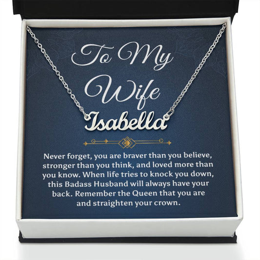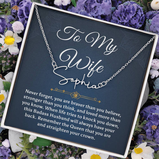 To My Badass Wife Gift From Husband Wife Birthday Anniversary Signature Style Name Necklace Gift, Valentine's Day Gift From Husband To Wife Jewelry