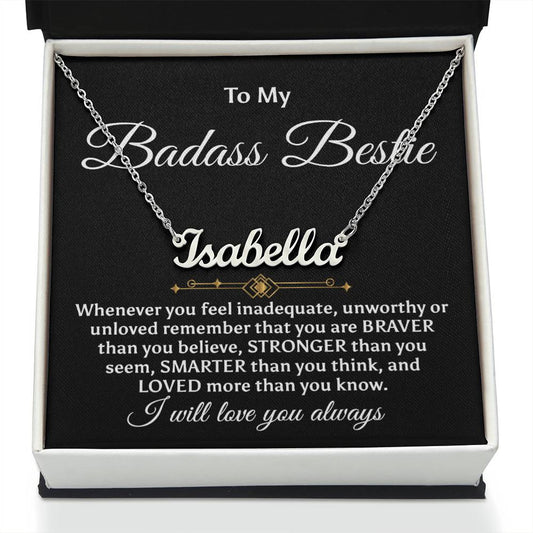 To My Badass Bestie Signature Style Name Necklace, Best Friend Birthday Gifts for Women with Message Card, Friendship Jewelry
