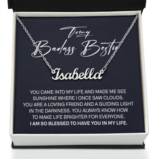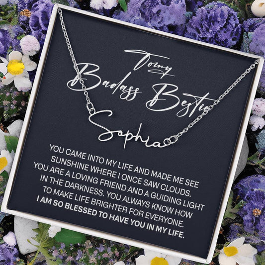 To My Badass Bestie Signature Style Name Necklace, Best Friend Birthday Gifts for Women with Message Card, Gifts for Girlfriend, Friendship Jewelry