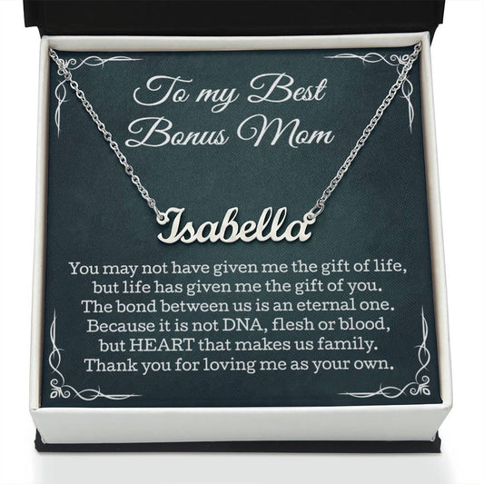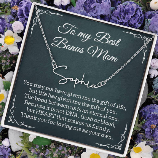 To My Best Bonus Mom Signature Style Name Necklace, Gift for Best Bonus Mom, Christmas, Birthday, Thank You Step Mom Gifts, Best Bonus Mom Jewelry