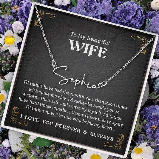 To My Beautiful Wife Signature Style Name Necklace, Meeting you was fate Husband Necklace, Christmas Gift For Women, Anniversary Gift For Wife