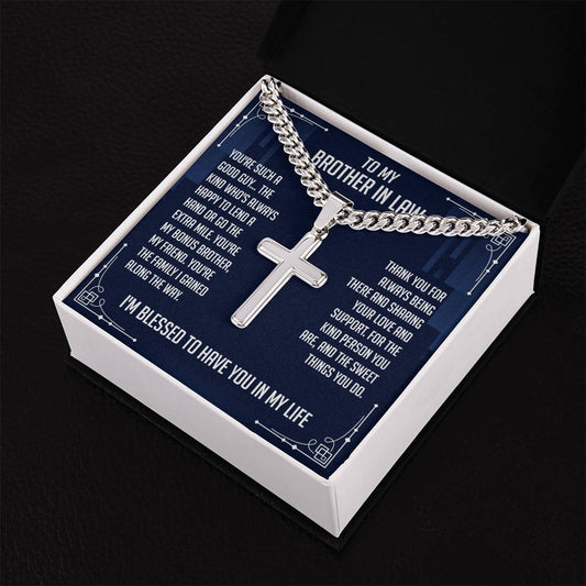 To My Brother in Law Gifts, Cuban Chain With Artisan Cross Necklace, Valentine's Gifts for a Brother In Law, Birthday Gift for Brother in Law
