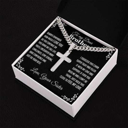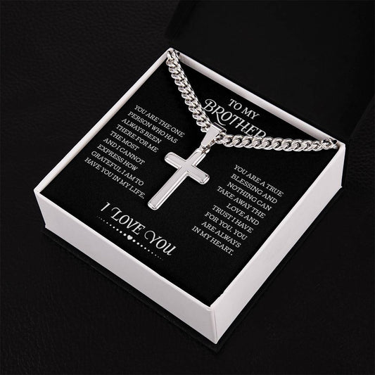 To My Brother Cuban Chain with Artisan Cross Necklace, Birthday Gift, Valentine's Day Gift, Christmas Gift, With Blessing Card And Gift Box