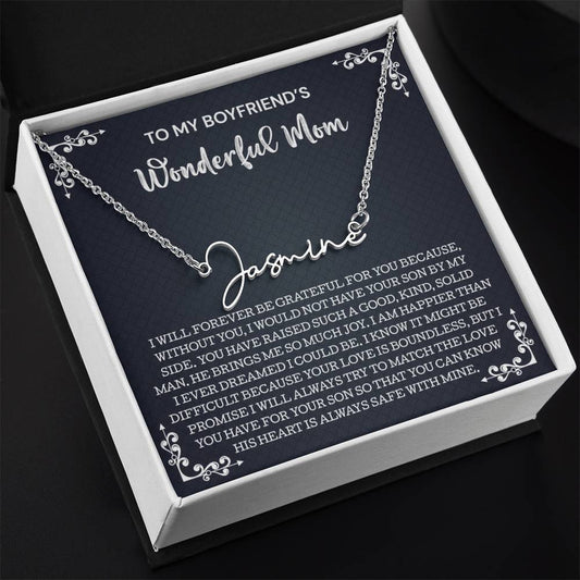 To My Boyfriend's Mom Gift, Signature Style Name Necklace, Gifts for Boyfriends Mom Necklace, To My Boyfriends Mom Gifts On Birthday Christmas