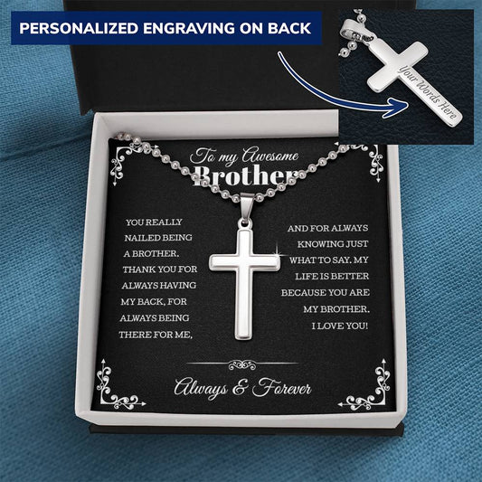To My Brother Personalized Cross Necklace | Unique Gift for Brother from Sister | Birthday Gifts for Brother I Thoughtful Gift for Brother