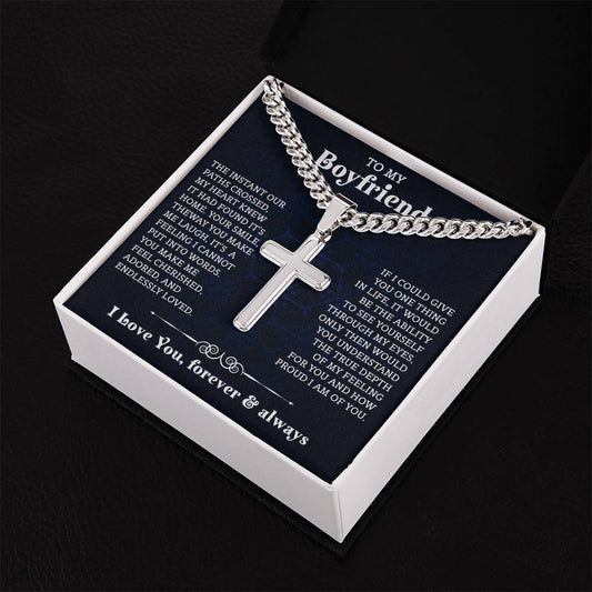 To My Boyfriend Cuban Chain with Cross Necklace , Gift For Boyfriend, Boyfriend Christmas Gift, Birthday Gift, Anniversary Gift For Him