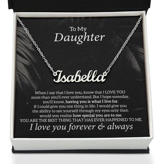 To My Daughter Necklace, Signature Style Name Necklace Gift for Daughter from Mom Dad, Birthday Christmas Gift