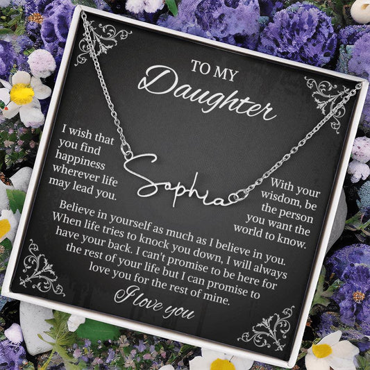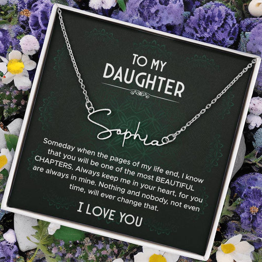 To My Daughter Signature Style Name Necklace, Personalized Gift for Daughter, Daughter Birthday Gift Message Card Jewelry, Handmade Necklace - Personalized Gift