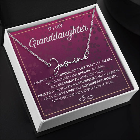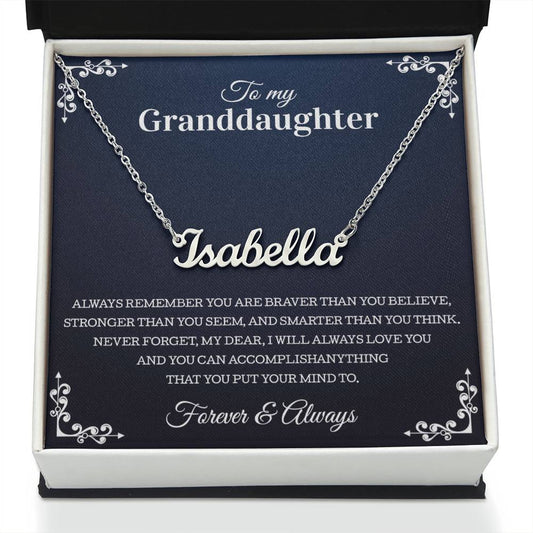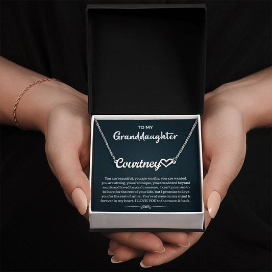 To My Granddaughter Signature Style Name Necklace Perfect Heartfelt Birthday, Graduation Or Holiday Gift For Your GranddaughterRegular price From $39.95 USDRegular priceUnit price / per$79.90 USDSale price From $39.95 USDSale