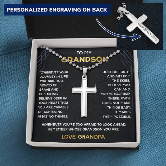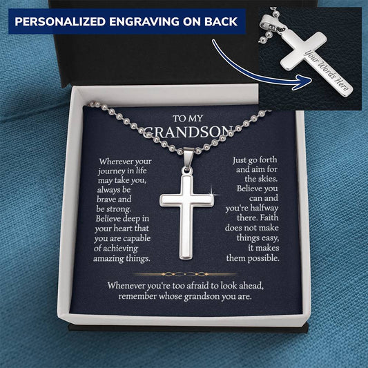 To My Grandson Personalized Cross Necklace, Heartfelt Jewelry Card, Meaningful Birthday Gift, Christmas Gift GrandsonRegular price From $59.95 USDRegular priceUnit price / per$119.95 USDSale price From $59.95 USDSale