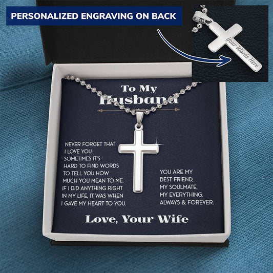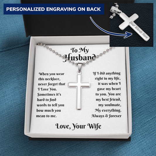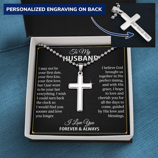 To My Husband - The perfect anniversary or birthday gift: an engraved men's cross necklace, symbolizing love, strength, and faithRegular price From $59.95 USDRegular priceUnit price / per$119.95 USDSale price From $59.95 USDSale