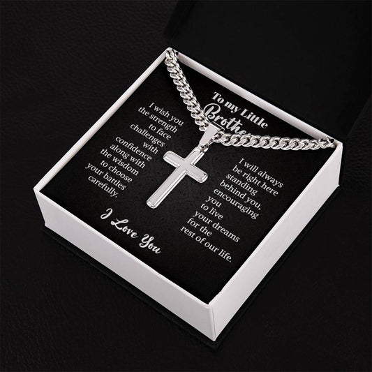 To My Little Brother Cuban Chain With Artisan Cross Necklace, Brother Graduation, Brother Milestone Gift, From Sister, From BrotherRegular price From $79.95 USDRegular priceUnit price / per$119.95 USDSale price From $79.95 USDSale