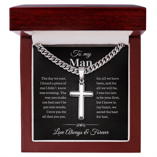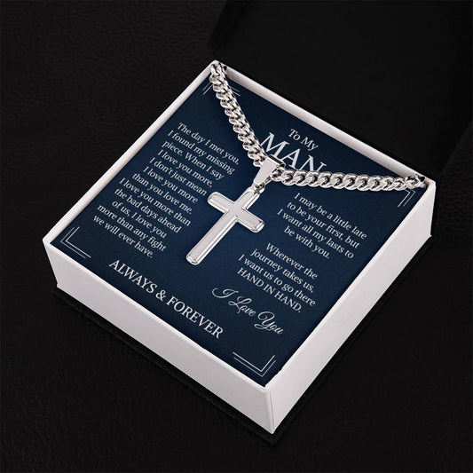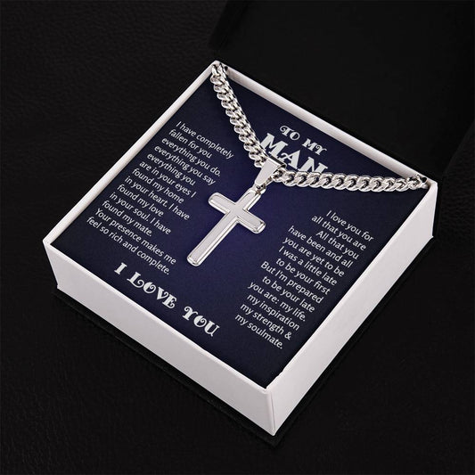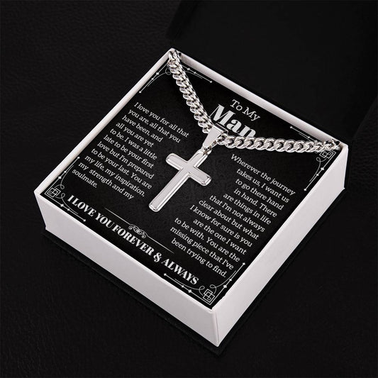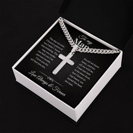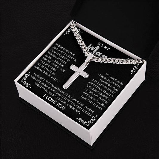 To My Man Cuban Chain with Artisan Cross Necklace Gift For Him, Gift For Husband, Jewelry Gift for Men, Boyfriend Birthday, Anniversary Gift For MenRegular price From $65.95 USDRegular priceUnit price / per$119.95 USDSale price From $65.95 USDSale
