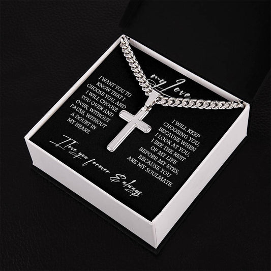 To My Man Gift, Cross Necklace for Men, Cuban Chain Pendant Necklace, for Husband, Boyfriend, Soulmate, Men's Christmas Gift, Wedding GiftRegular price From $79.95 USDRegular priceUnit price / per$119.95 USDSale price From $79.95 USDSale