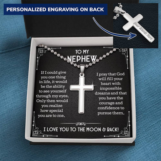 To My Nephew Personalized Cross Necklace • Nephew Gift for Men • Message Card Nephew Jewelry • Necklace for Nephew for Christmas