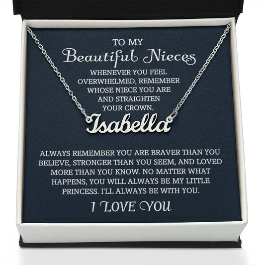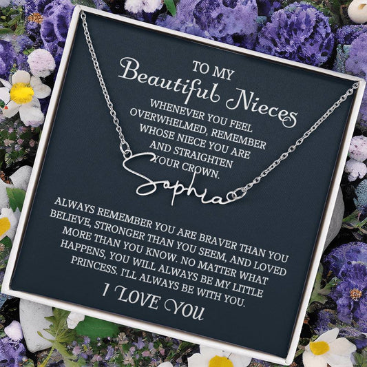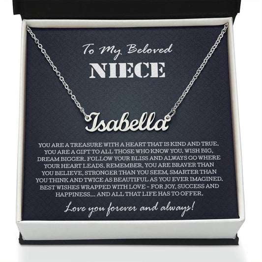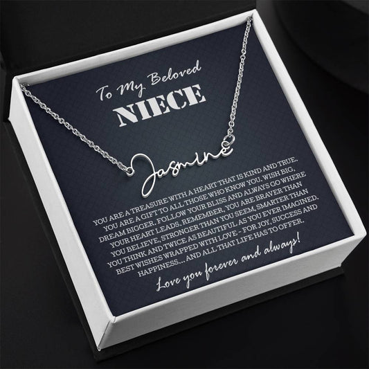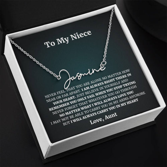 To My Niece Signature Style Name Necklace , Perfect Birthday or Graduation Gift with Blessing Card and Gift Box Packaging
