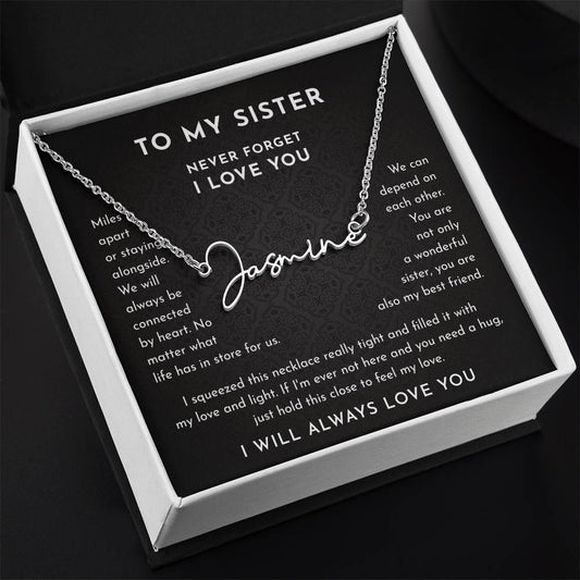 To My Sister Gift, Signature Style Name Necklace, Never Forget I Love You