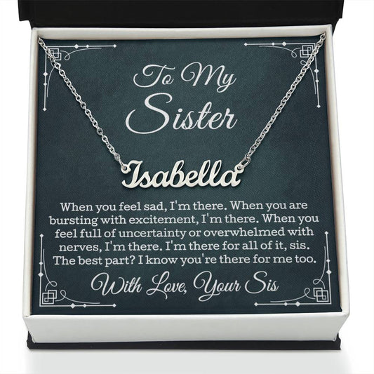 To My Sister Personalized Name Necklace for Sister, Sister Birthday, Graduation, Wedding with Sentimental Message Card, Box Included