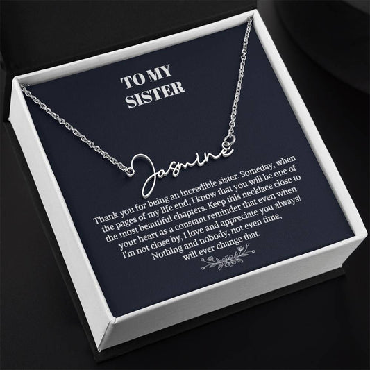To My Sister Necklace, Sister Gift Signature Name Necklace, Jewelry Gifts For Sister With Message Card Led Luxury Box