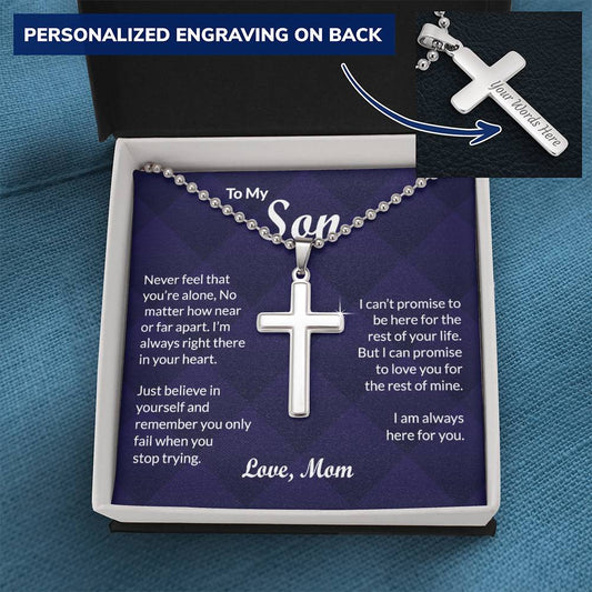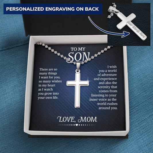 To My Son - Personalized Cross Necklace - Perfect Birthday or Christmas Gift for Him