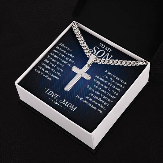 To My Son Cuban Chain With Artisan Cross Necklace From Mom, Son Gift From Mom, Mother And Son Necklace, Christmas Birthday Graduation Gifts For Son