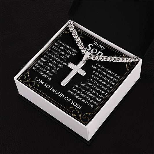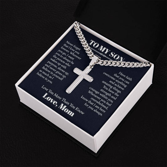 To My Son Cuban Chain with Artisan Cross Necklace • Son Gifts from Mom • Mother to Son Gifts • Gifts for Son Birthday • Unique Gift for Son from Mother