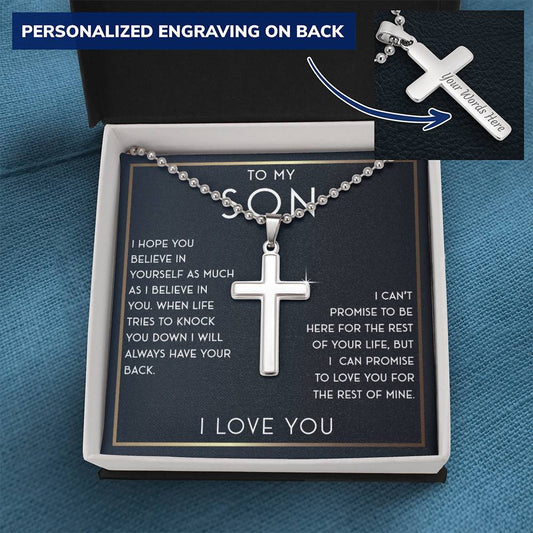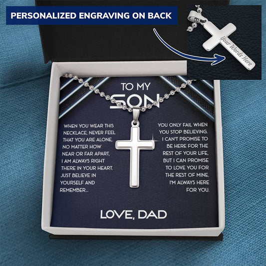 To My Son from Dad: Customized Cross Necklace with Ball Chain, an Ideal Birthday or Christmas Present