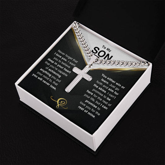 To My Son Cuban Chain with Artisan Necklace, Son Necklace, Son Jewelry, Gifts For Son From Mom Dad, Cross Necklace For Men Boys, Christmas Gift Son