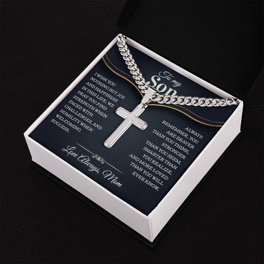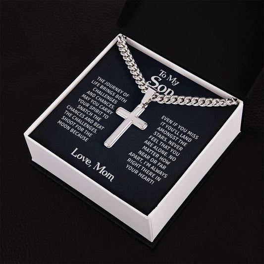 To My Son From Mom Necklace, Mother Son Necklace, Son Jewelry, Gifts for Son From Mom, Christmas Gift for Son, Cuban Chain With Artisan Cross Necklace