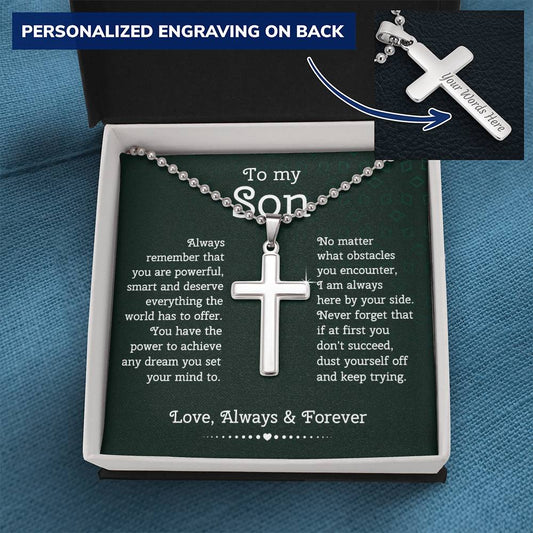 To My son Gift Personalized Cross Necklace, Birthday Gift Necklace For Son, Gift From Dad, Mom, Graduation Gift Necklace For Son, Birthday Gift Cross Necklace
