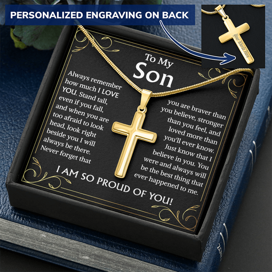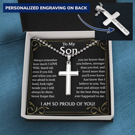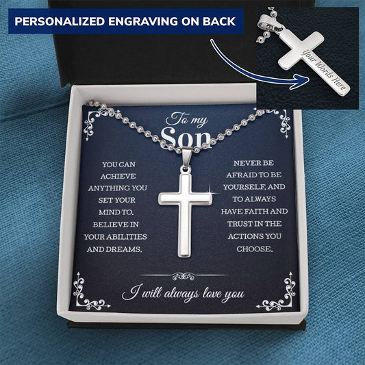 To My Son Gift: Personalized Engraved Cross Necklace - Perfect for Christmas, Birthdays, and Graduations