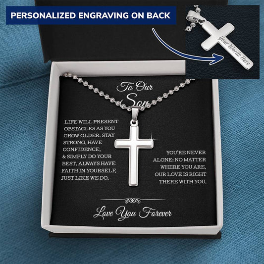 To My Son Necklace, Personalized Cross Necklace Card