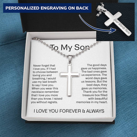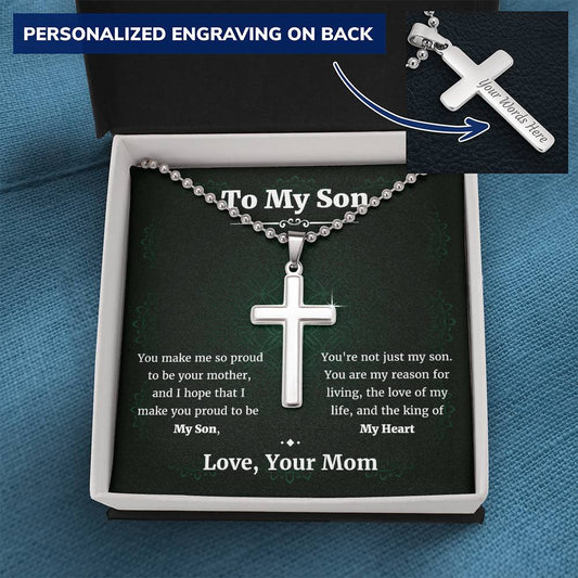 To My Son Personalized Cross Necklace • Son Gifts from Mom • Mother to Son Gifts • Gifts for Son Birthday • Unique Gifts for Son from Mother