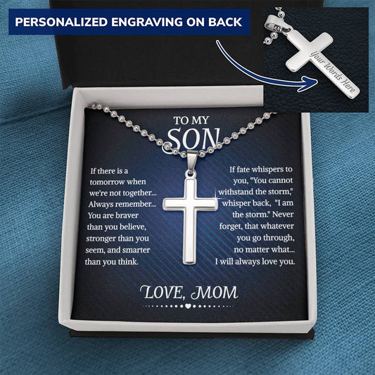 To My Son Personalized Cross Necklace Ball Chain • Gifts from Mom to Son • Mother's Gift to Son • Son Birthday Gift • Unique Son Gift from Mom