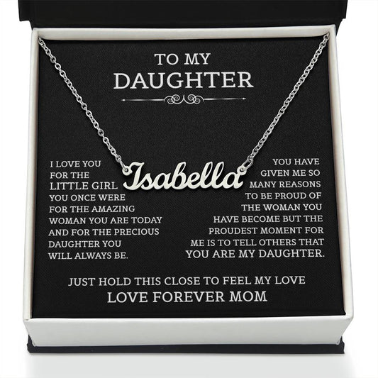To My Daughter Signature Style Name Necklace from Mom | Christmas Message Card Name Necklace