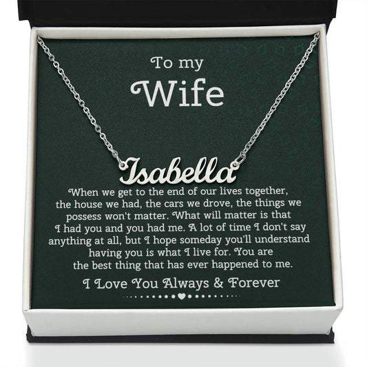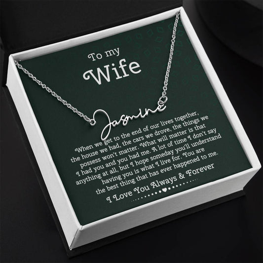 To My Wife Signature Style Name Necklace, From Husband, Anniversary Gift for Wife, Sentimental Gift for Wife, Birthday Gift for Wife