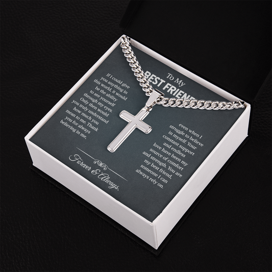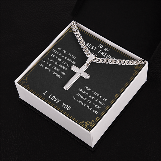 Best Friend Cuban Chain With Artisan Cross Necklace , Birthday Christmas Graduation Jewelry Gift For Best Friend