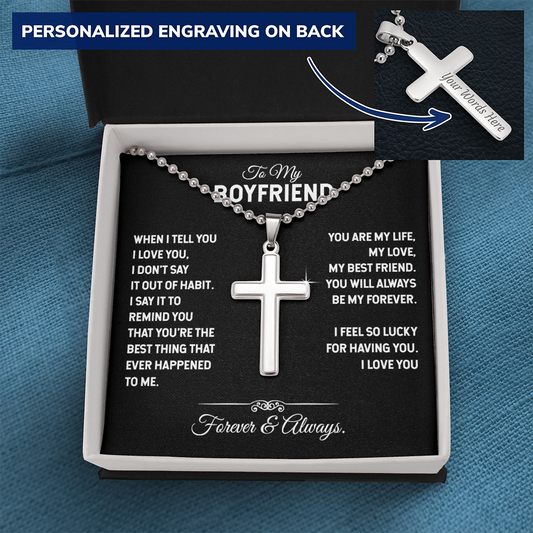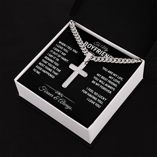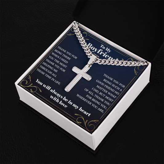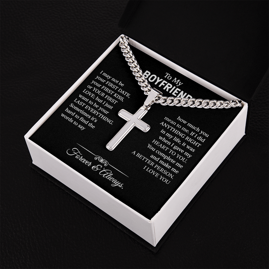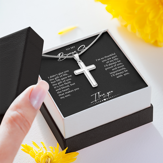 Bonus Son Necklace Gift, To My Bonus Son From Mom, Dad Necklace, Bonus Son Gift, Step Son Gift, Christmas Gift For Bonus Son, Adopted Son Gift, Cuban Chain with Artisan Cross Necklace