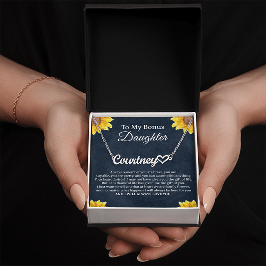 Bonus Daughter Gifts Bonus Daughter Necklace from Bonus Mom & Stepdad Heart Name Necklace for Stepdaughter Gifts from Stepmom