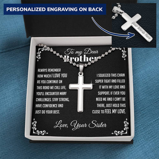 Brother Personalized Cross Necklace From Sister• Unique Gift for Brother from Sister • Birthday Gifts for Brother • Thoughtful Gift for Brother