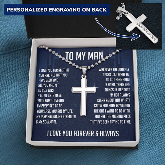 Cross Necklace for Him, Boyfriend Gift from Girlfriend, Husband Gift from Wife, Groom Gift from Bride on Wedding Day, Anniversary or Birthday Present for Him, Valentine's, Father's Day, Christmas Gift