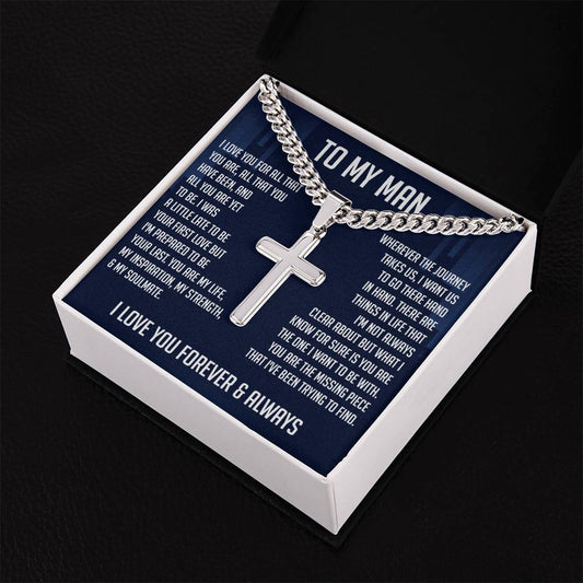 Cross Necklace Cuban for Him, Boyfriend Gift from Girlfriend, Husband Gift from Wife, Groom Gift from Bride on Wedding Day, Anniversary or Birthday Present for Him, Valentine's, Father's Day, Christmas Gift