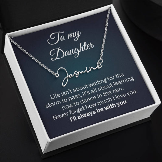Daughter Gifts From Mom Dad To My Daughter Necklace Signature Name Necklace Graduation Gifts Birthday Christmas Message Card&LED Gift Box